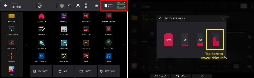 Important: After you have tapped 'OK' - you will need to either create/load a project, or restart your MPC. This ensures that the new drive is officially set as the Temporary File Location.