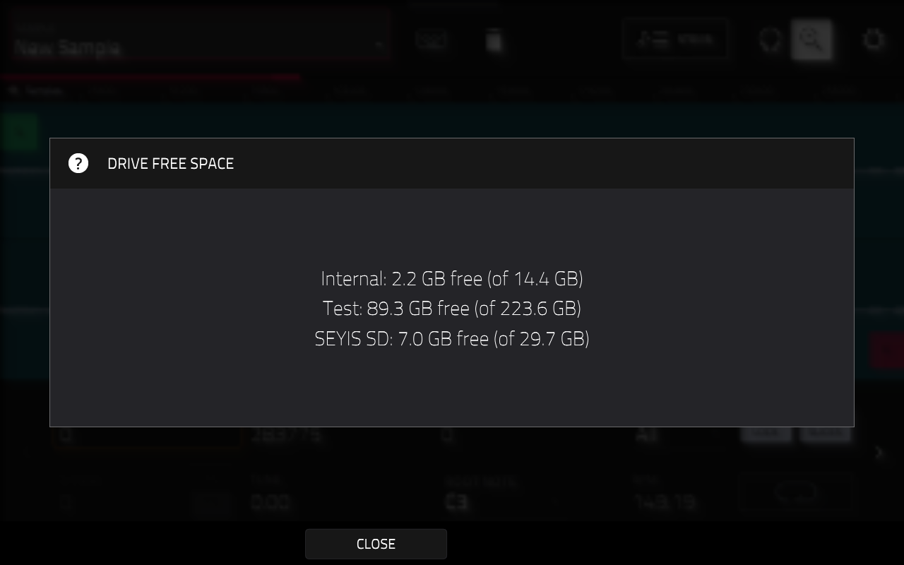 3. After you have selected your drive, the MPC will appear with a dialogue stating: Changes will take effect on reloading or starting a new project - tap OK
