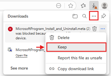 Disregard this prompt and retain/download the file by clicking the 3-dot icon and selecting 'Keep'.
