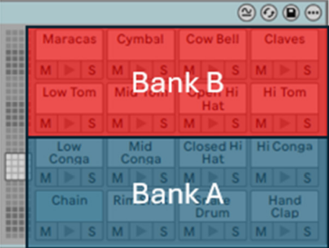 Press the BANK A/B button on MPK® mini IV to access additional samples in the Drum Rack.