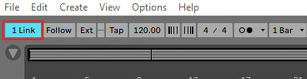 4. Live のコントロールバーの左端にある Link ボタンをクリックして、Link を有効にします。MPC/Force を表す 1 Link が表示されます。