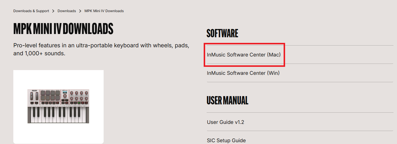 - 最新のLogic Proコントロールスクリプト(Version v0.10.0-40)をダウンロードしてください。公式ダウンロードページ( Downloads | Akai Pro )からダウンロード可能な inMusic Software Center(Mac)を経由して入手できます。