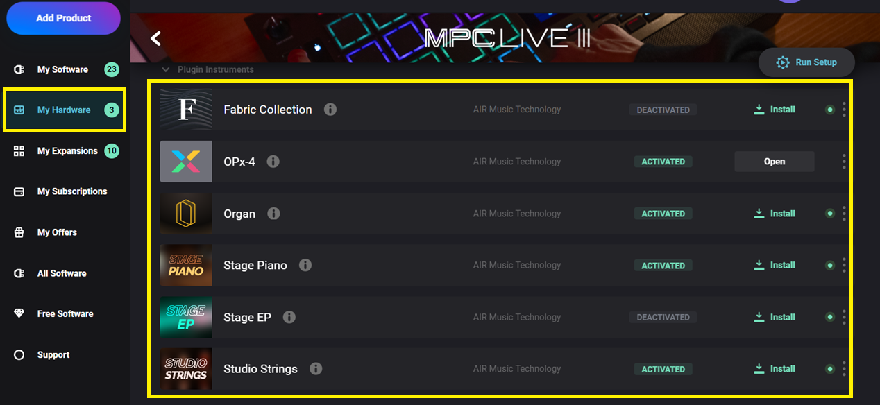 My Hardware タブに移動し、お使いの MPC Live III を選択してください。